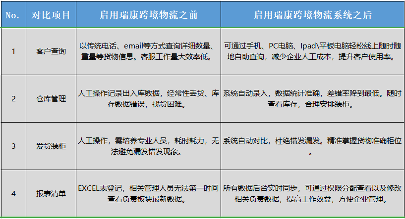 瑞康擁有豐富的跨境物流系統(tǒng)設(shè)計(jì)、開發(fā)、實(shí)施經(jīng)驗(yàn),自公司2012年成立以來(lái)不斷創(chuàng)新、引領(lǐng)跨境物流行業(yè)系統(tǒng)的升級(jí)與優(yōu)化。今年9月瑞康與E鴿物流達(dá)成合作協(xié)議定制開發(fā)E鴿跨境物流系統(tǒng)。